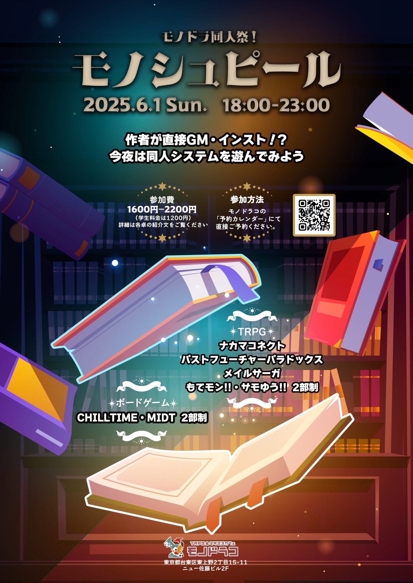 モノドラ同人祭!「モノシュピール」作者が直接GM・インスト!?今夜は同人システムを遊んでみよう 開催場所TRPG&マダミスカフェ モノドラコ 〒110-0015 東京都台東区東上野2丁目15-11 ニ…