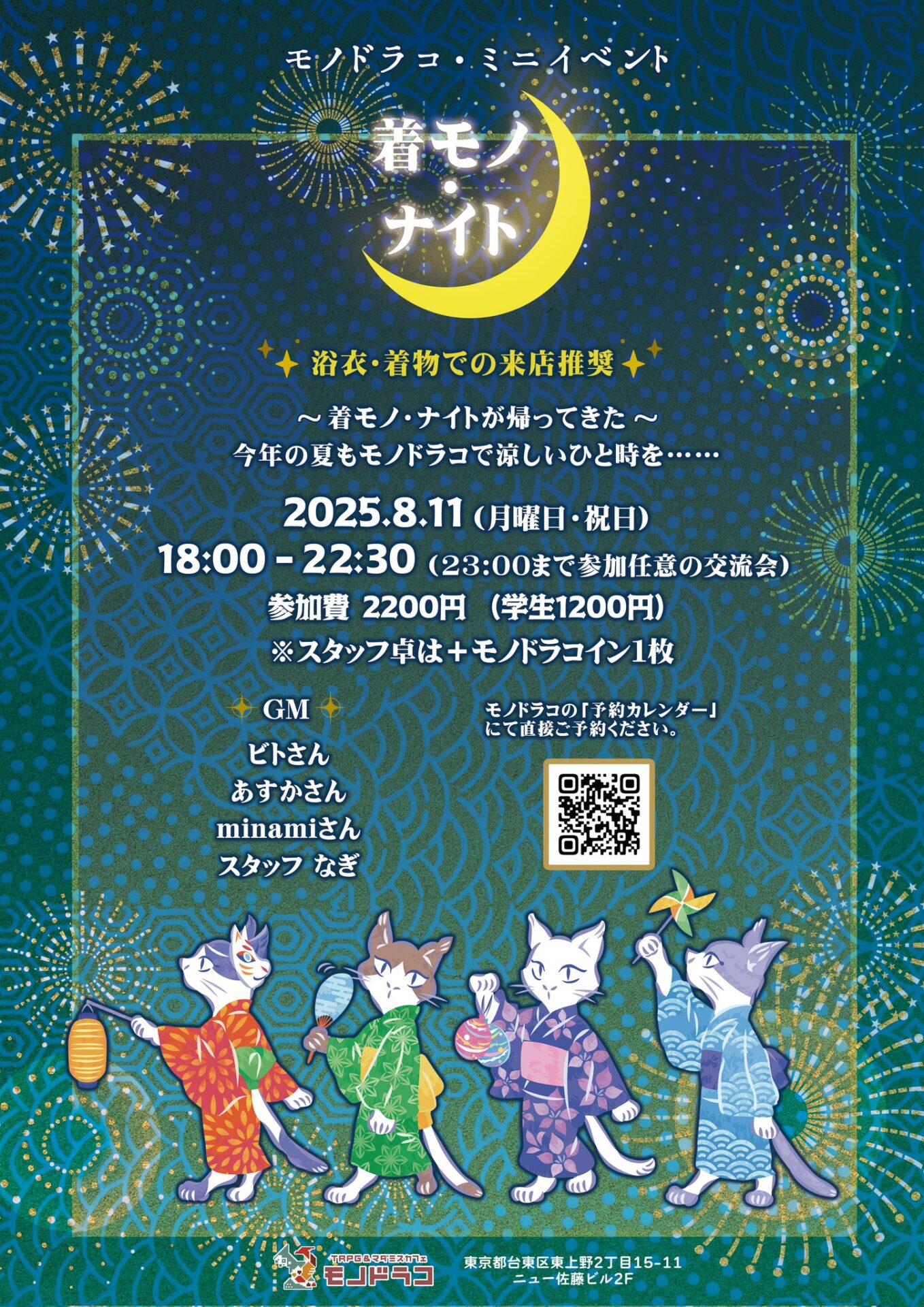 👘モノドラコに浴衣で集まろう🌜🗓️8/11(月曜日・祝日) 18:00〜22:30浴衣・着物着用で遊ぶ夏シナリオ今年の夏もモノドラコで涼しいひと時を…… ✴️プレイヤー募集中!✴️参加希望はモノドラコ…