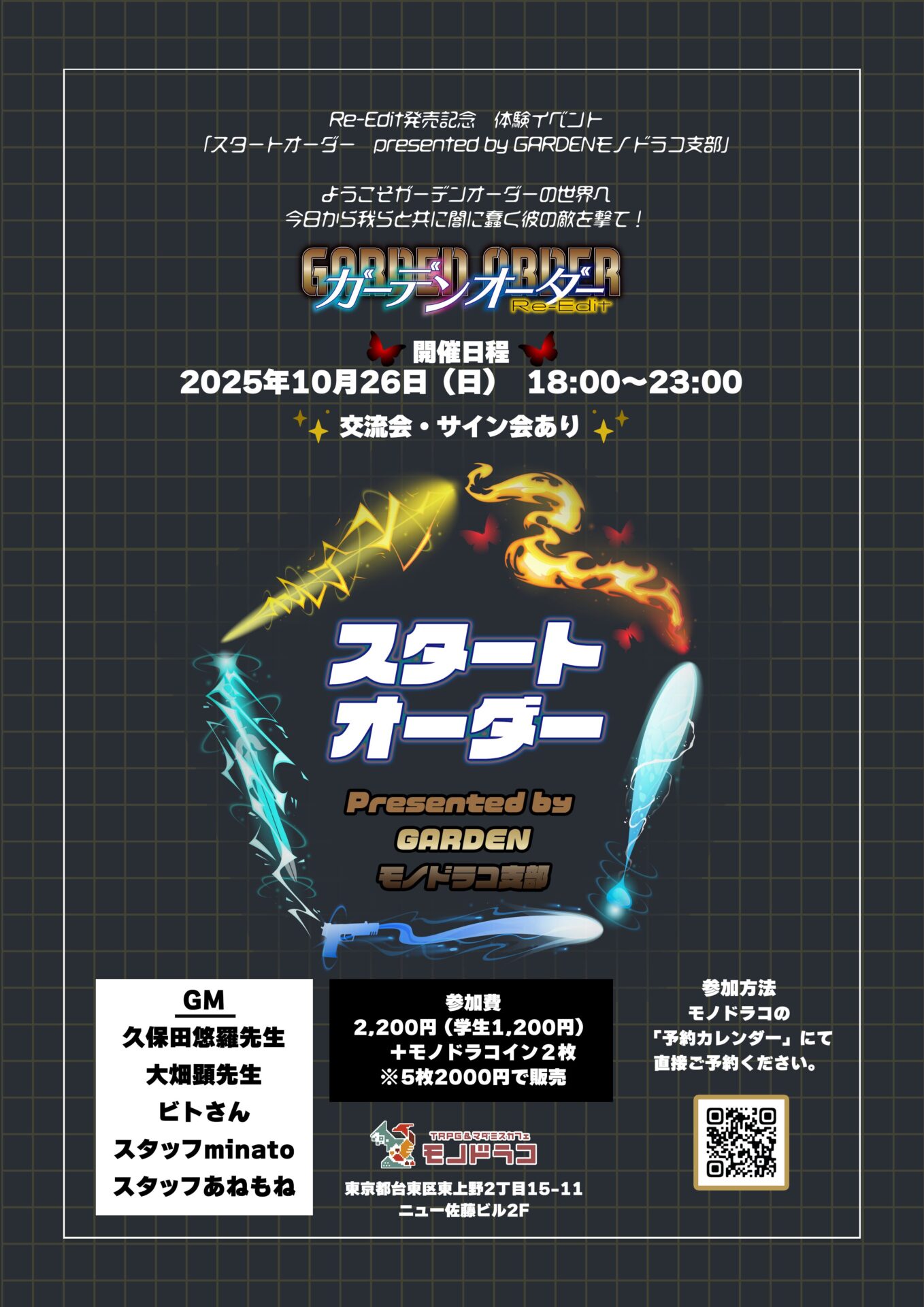 10月26日(日)18:00~23:00 開催「バディアクションTRPGガーデンオーダー」 Re-Edit発売記念体験イベント 『スタートオーダー』presented by GARDENモノドラコ支部…