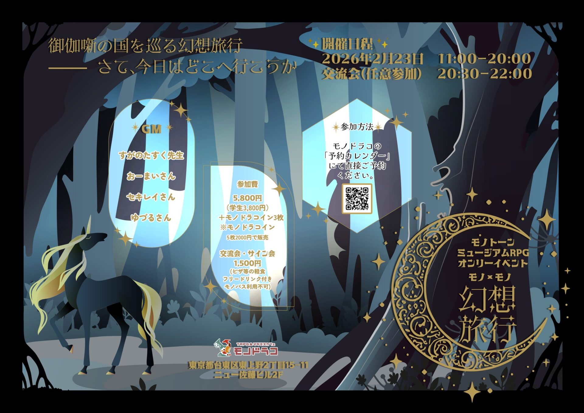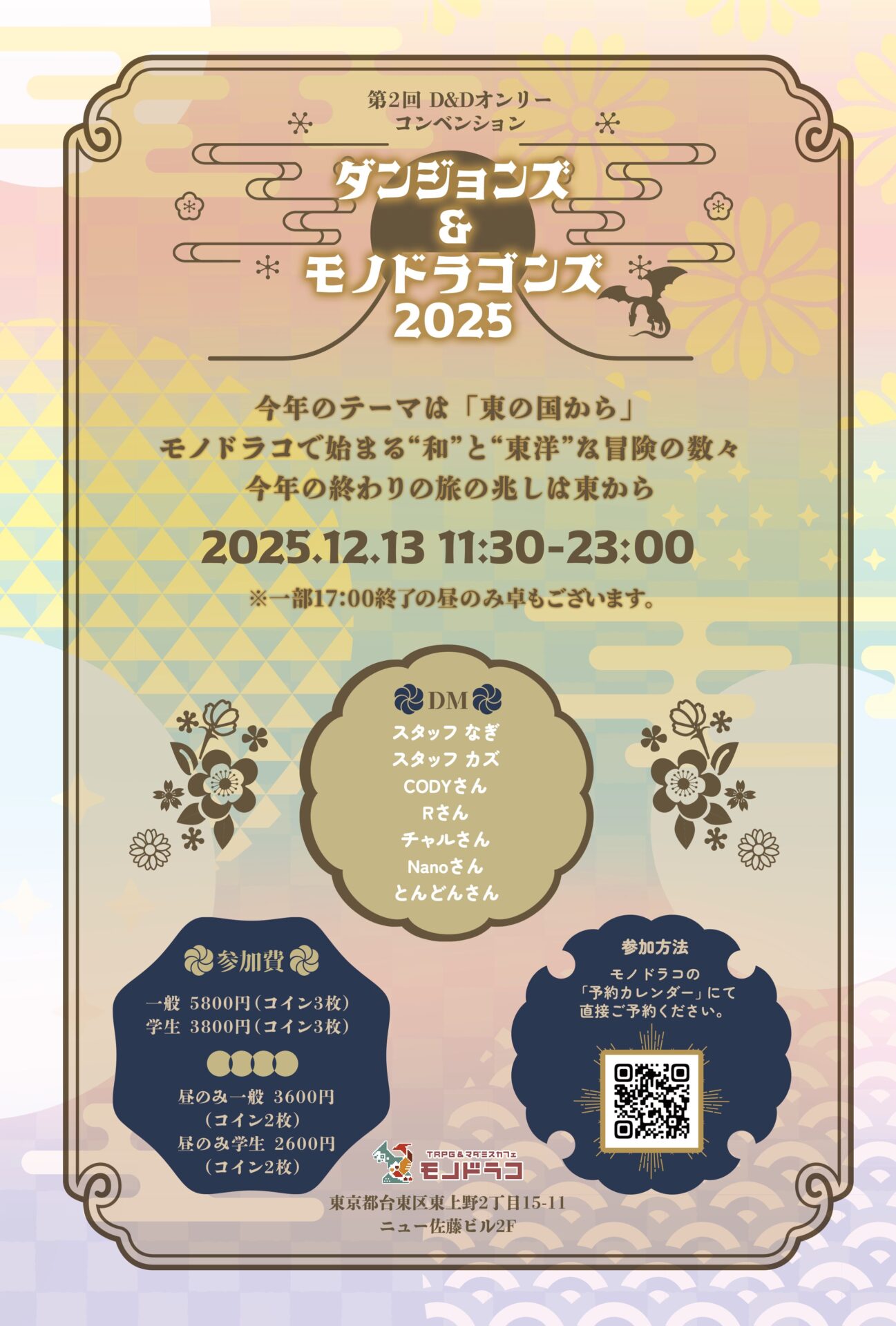 今回のテーマは「東の国から」七人のダンジョンマスターによる“和と東洋”を舞台にした特別な冒険をお楽しみください。 2月13日(土)11:30、18:00 ご予約はこちらからhttps://calend…