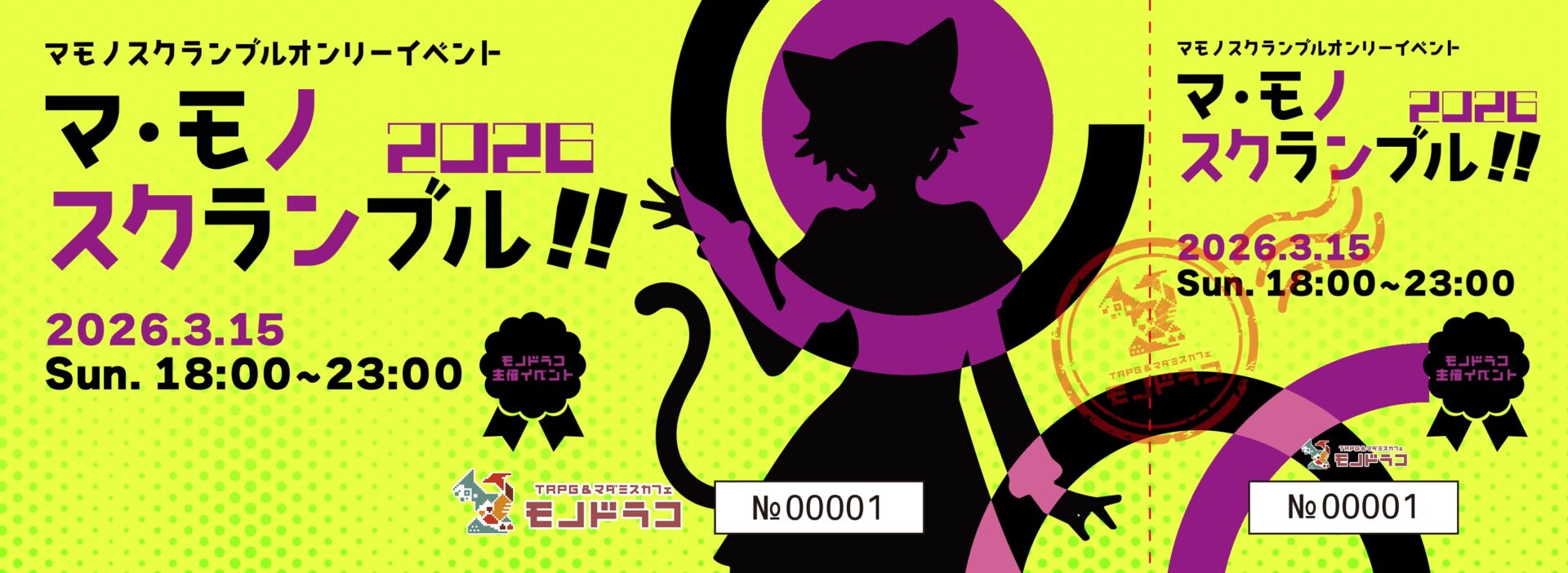 【3月開催 モノドラコイベント】マ・モノスクランブル!!2026 Posted 2026年2月1日 by mono-admin 3/15(日) 18:00〜23:00開催! 東京は毎日どこかで大事件! 今夜は上野やモノドラコで何やらトラブルが────? PL募集は2/7、18:00〜 ご参加いただいた方全員にシリアルナンバー入りチケットをプレゼントしています!