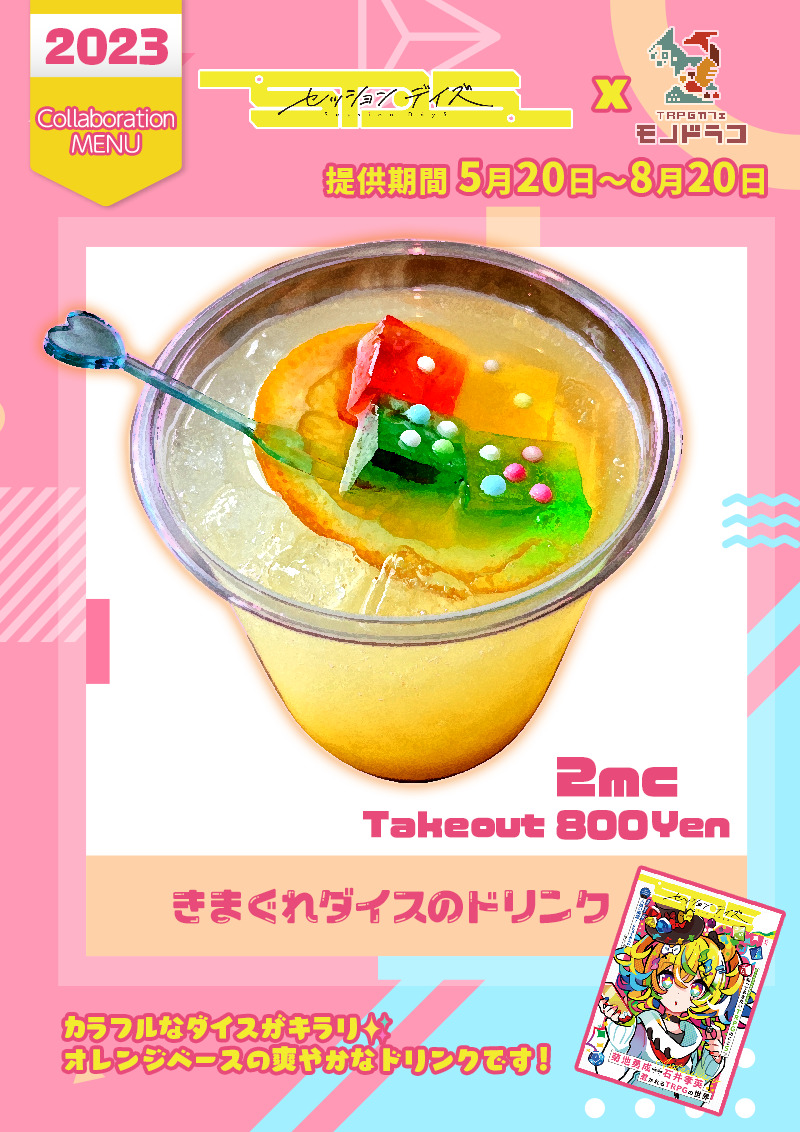 5/20(土)は 「セッションデイズ」の発売日! 発売記念に合わせてモノドラコではセッションデイズコラボドリンク 「きまぐれダイスのドリンク」 を発売します! あなたのセッションライフがもっとハッピー…