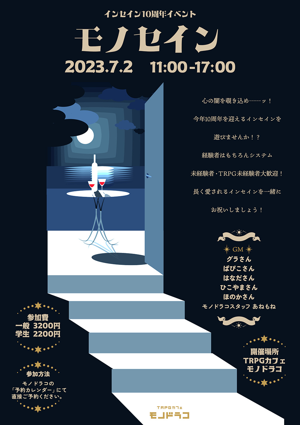 2023.7.2 11:00〜17:00 心の闇を覗き込め……ッ!今年10周年を迎えるインセインを遊びませんか!?経験者はもちろんシステム未経験者・TRPG未経験者大歓迎!長く愛されるインセインを一緒…