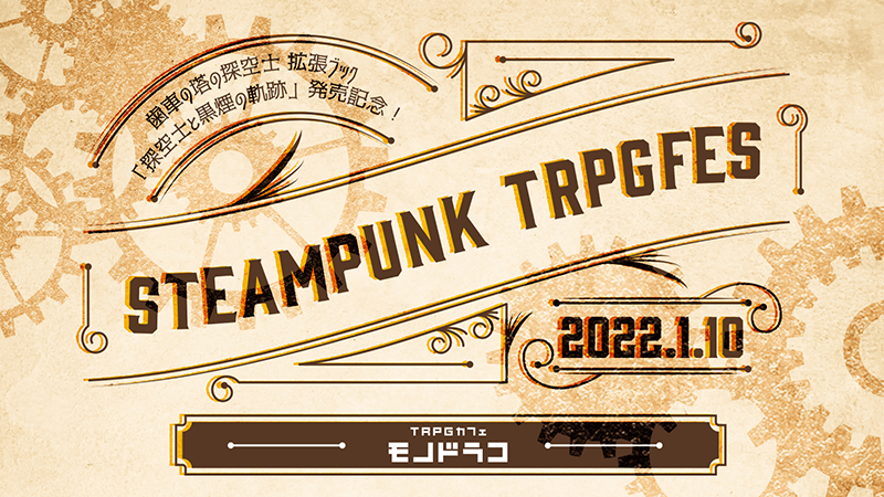 新春のモノドラコのイベント卓のお知らせです。 「歯車の塔の探空士」新サプリメント『探空士と黒煙の軌跡』発売記念! 【スチームパンクTRPGフェス】を1月10日(月・祝)に開催します。 蒸気あふれる世界…